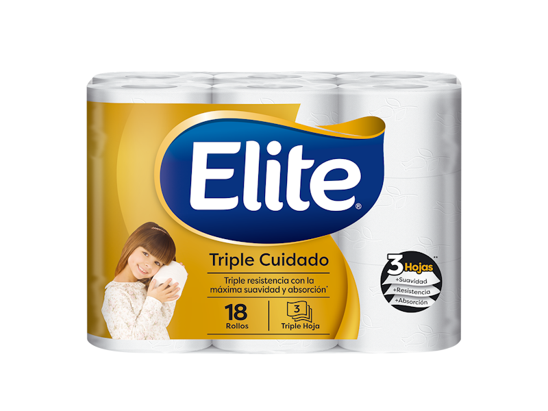 Porque 3 es mejor que 2, Elite Triple Cuidado. Con su tecnología triple hoja te brinda triple resistencia, triple grosor y máxima suavidad.